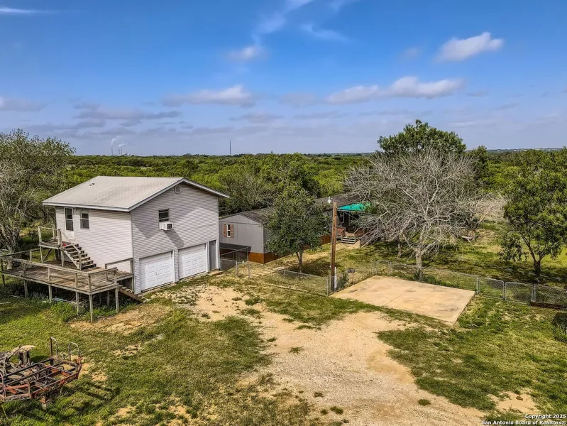 This property embodies the true spirit of Texas ranching, a lifestyle deeply rooted in tradition and heritage. Feel the echoes of generations who have worked the land, nurtured livestock, and found solace in the breathtaking landscapes. From cowboy culture to rodeos, to BBQs, ranch life offers a unique glimpse into a way of life that is quintessentially Texan. The home has been "newly refurbished" and "remodeled," including a new heating and air conditioning system, new double-pane windows, flooring, doors, modern cabinetry, all-new walls, and insulation; the list goes on. Nestled among lush greenery and a vibrant lawn, the home boasts a well-defined and secure outdoor space, featuring a separate gated grass area. At the entrance, you will see a separate metal storage. Next door stands a charming dwelling, a craftsman's haven. On the ground floor, a spacious carpenter's dream workshop un...