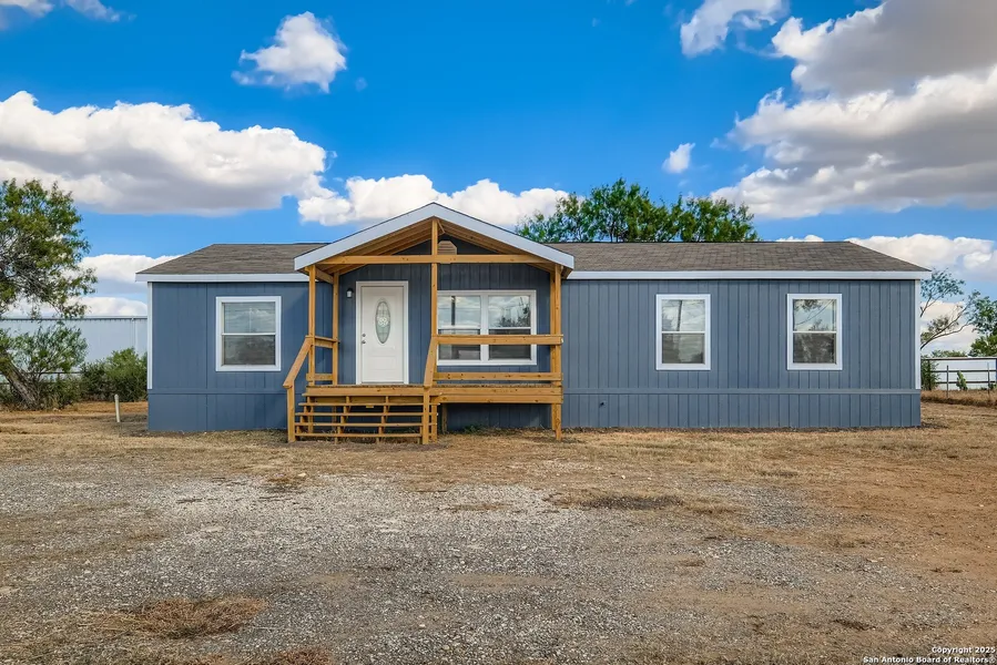 Exceptional Manufactured Home located about 10 minutes away from Calaveras Lake. Home has just been retrofitted. Live in San Antonio with a country feel, on 0.71 acres with NO HOA! 4 bedrooms and 2 bathrooms comfortably nestled in 1664sqft of living space. The home has brand-new stainless-steel appliances (refrigerator, stove and dishwasher), stainless steel sink, new water resistant, vinyl, interlocking flooring in common areas and bathrooms, and fresh new carpet in all 4 bedrooms. Light fixtures were replaced with fans in all the bedrooms. Brand new porch decks in front and in back of the home as well as new, standard size, front and back doors. New skirting around the house with the addition of a water spicket on the front of the house, HVAC and Septic system have been recently serviced. New tin roof on the chicken coop.