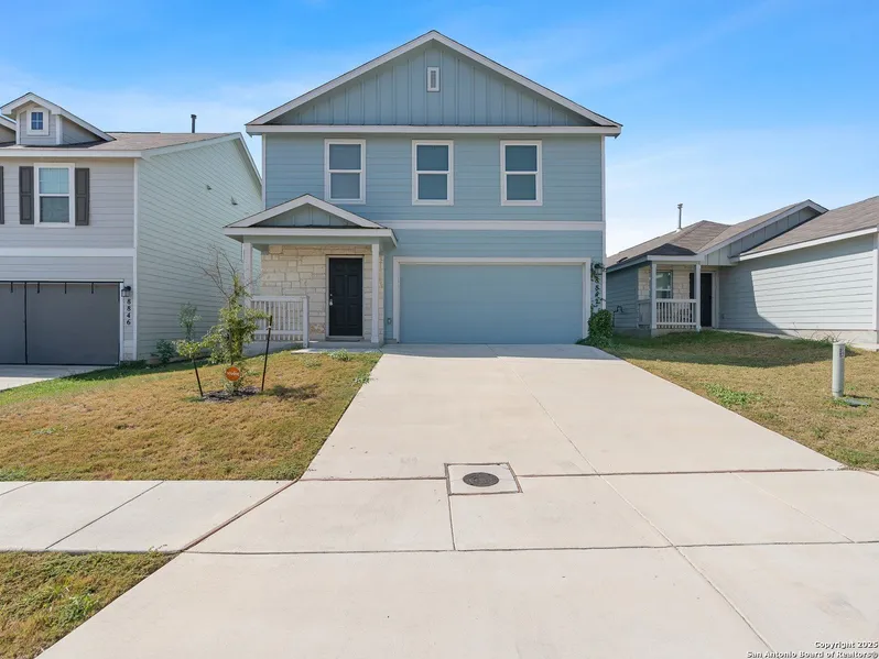 Welcome to 8842 Knox Ridge, a beautifully designed Lennar home nestled in the desirable community of Knox Ridge in Converse, TX. This two-story residence features 4 bedrooms, 2.5 bathrooms, and 1,950 square feet of thoughtfully planned living space. The open-concept layout on the main floor seamlessly connects the spacious living room, dining area, and kitchen-perfect for everyday living and entertaining. The kitchen is equipped with granite countertops, stainless steel appliances, and ample cabinet space. Upstairs, you'll find all four bedrooms, including the private primary suite complete with a walk-in closet and en-suite bathroom. A versatile loft area provides additional living space, ideal for a media room or playroom. The laundry room is conveniently located upstairs as well. Outside, enjoy a fully fenced backyard offering plenty of room to relax or entertain. This move-in-ready h...