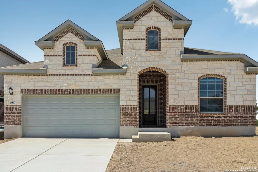 Welcome to 29507 Arrowtooth Blvd, one of Meritage Homes' most popular one-story floor plans - The Holly - featuring 4 bedrooms, 3 bathrooms, a private office, or a formal dining room, all situated on a peaceful greenbelt lot in the sought-after Fox Falls community of Boerne, Texas. Designed with functionality and comfort in mind, this brand-new, energy-efficient home offers an open-concept layout filled with natural light and smart use of space. The laundry room's convenient access to the primary bathroom adds everyday ease and efficiency, while expansive walk-in closets throughout provide ample storage. Meritage's signature energy-saving features ensure year-round comfort, healthier air quality, and lower utility costs. Fox Falls boasts picturesque brick and stone elevations, breathtaking Hill Country views, and a prime location with easy access to I-10 and Loop 1604. Enjoy shopping, dining, and entertainment just minutes away at Boerne Oaks and The Rim, along with the benefit of being in the highly acclaimed Boerne Independent School District. Experience the perfect blend of modern design, energy efficiency, and Hill Country charm in this stunning new home.
