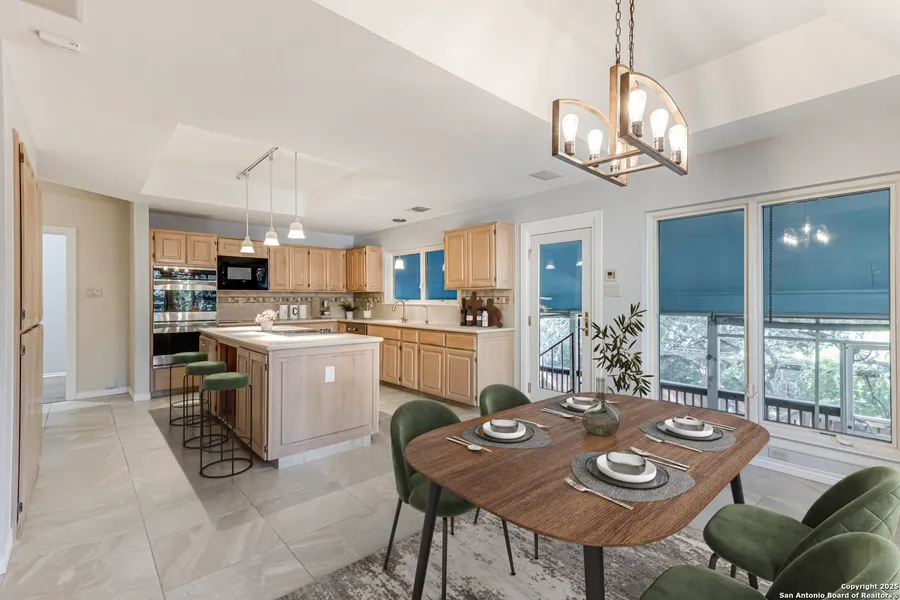 Set among mature oak trees and backing up to a serene greenbelt, this stunning brick home offers timeless curb appeal and a thoughtfully designed THREE-STORY floor plan. The main level features a spacious kitchen with island, double ovens, and abundant cabinetry, opening to the dining and living areas. The primary suite is also on the main floor, showcasing a spa-inspired bath with soaking tub, glass-enclosed shower, dual vanities, and elegant finishes. An open flex space adds versatility for work, study, or hobbies. The second level provides three generously sized bedrooms and two full baths, creating comfortable accommodations for family and guests, while the third floor offers a large game/media room - the perfect space for entertainment, hobbies, or a private retreat. The backyard is a true oasis with a screened-in patio, expansive deck, and sparkling pool. Surrounded by mature trees...