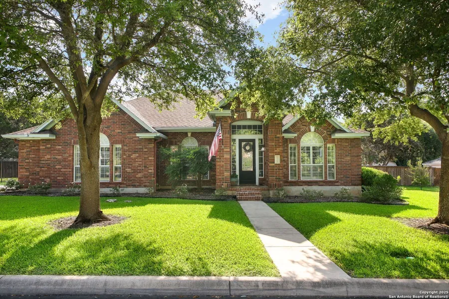 Located in the exclusive gated community of Country Estates just off I10 near Boerne, this half-acre property is a rare find. Towering mature trees surround the backyard, creating exceptional privacy for the sparkling inground pool and outdoor entertaining space. Inside, enjoy soaring 12 ft ceilings and expansive 7 ft windows that flood the home with natural light. The upgraded kitchen is perfect for gatherings, while the spacious master suite offers a spa-like bath with a large walkin shower and soaking tub. Just 2 minutes to I10, providing quick and easy access for your daily commute. With multiple living spaces and room for everyone to spread out, this home is built for both comfort and entertainment.