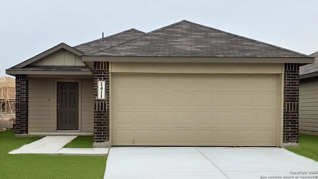 The Estero is a charming one-story home featured in Sereno Springs in Converse, TX. Featuring 2 classic front exteriors, this 4 bedroom, 2 bathroom home also offers 1586 square feet of living space and a 2-car garage. A front porch (per plan) welcomes you into the home and opens to the gourmet kitchen which includes quartz counter tops, shaker style cabinets, stainless steel appliances and an open concept floorplan with the kitchen flowing seamlessly into the dining room and living room. The main bedroom has an attractive ensuite bathroom that features a quartz vanity countertop, shaker style cabinetry and a spacious tiled walk-in shower. Enjoy additional storage with a large walk-in closet in the primary bedroom. Your secondary bedrooms all feature quality carpet flooring and a closet, and can be used as bedrooms, offices, work out spaces or other bonus rooms. The possibilities are endless with The Estero floor plan. Additional features include sheet vinyl flooring in entry, living room, and all wet areas, quartz counter tops in all bathrooms and HOME IS CONNECTED base package. Using one central hub that talks to all the devices in your home, you can control the lights, thermostat and locks, all from your cellular device.