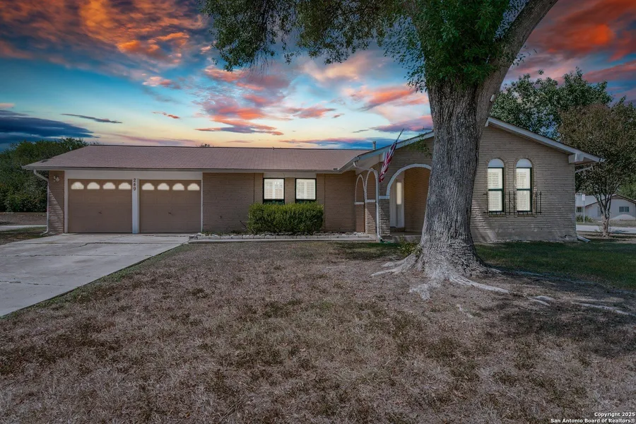 Offering Lender Credit with Preferred Lender! Beautiful one-story brick home on over 1/3 acre corner lot! Welcoming covered front porch leads to a tiled entry with wood floors in living areas, new carpet in bedrooms. Spacious living and dining with plantation shutters throughout, and family room with corner fireplace. The eat-in kitchen features granite counters, new stainless appliances, including smooth cooktop and refrigerator. Oversized laundry with abundant cabinetry connects to a two-car garage and backyard with screened patio and shed with electricity. Updated baths, newer ceiling fans, recessed lighting, and fresh paint complete this move-in ready home!