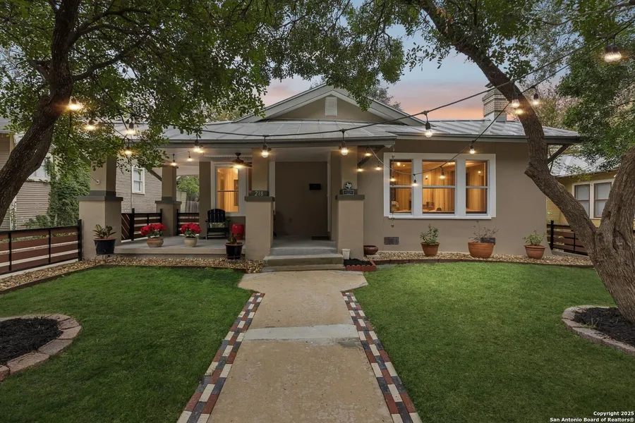 Expertly restored and beautifully finished, this Mahncke Park classic home and guest house blend original charm with modern sophistication. Home and guest house together equal nearly 2000 sqft. Dark wood floors, high ceilings, and an open-concept layout create a dramatic yet welcoming living space. The updated kitchen showcases rich granite countertops, stainless steel appliances, and an effortless connection to the dining and living areas - ideal for daily living and entertaining. Abundant natural light streams through well-placed windows, highlighting the home's thoughtful details, including glass door knobs, polished hardware, and tastefully updated bathrooms that complement the home's timeless character. Outdoors, the spacious screened porch overlooks mature landscaping, framed by a uniquely crafted perimeter fence that enhances curb appeal and privacy. A few steps from the patio is a fully finished, guest house constructed in 2022. It has two rooms and a full bath, perfect for guests, multigenerational living, or a dedicated office suite. A separate laundry building and additional storage structure provide exceptional flexibility and functionality. Located just minutes from the Botanical Garden, the Zoo, the Pearl, and major cultural destinations, this turnkey property offers a rare opportunity to enjoy historic living with modern conveniences in one of San Antonio's most beloved neighborhoods.