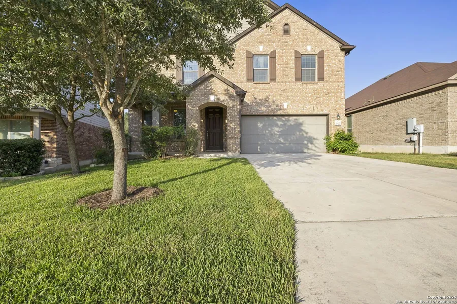 Spacious & Energy-Efficient Living in The Oaks at Fox Grove This 3,140 sq. ft., 4-bedroom, 2.5-bathroom home offers a flexible layout with a dedicated office, two living areas (one easily set up as a game or media room), and a formal dining space. No carpet throughout ensures a modern, low-maintenance style. Step outside to enjoy a covered front porch and covered back patio overlooking a landscaped yard with fruit trees and mature shade trees along the back fence. The east-facing backyard stays cooler in the afternoons, creating a perfect setting for outdoor relaxation even in the Texas summer. Paid-off solar panels deliver lasting energy savings and efficiency. New Dishwasher and Water Heater. Residents of The Oaks at Fox Grove enjoy access to a basketball court, park, and swimming pool. The location offers easy access to TPC San Antonio, as well as nearby shopping, dining, and everyday conveniences. With its spacious interior, inviting outdoor spaces, and desirable community amenities, this property is ready to be your next address.