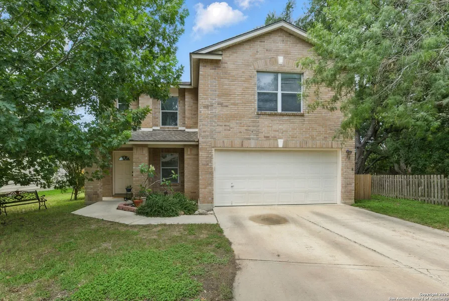 Welcome to Brookstone and 11 Viking Oak, a beautifully situated home on a quiet cul-de-sac next to a "true green belt". This contemporary residence offers convenient access Hwy 281, Loops 1604 & 410 as well as the San Antonio Airport. Just under 2,200 square feet, the home features three generously sized bedrooms on the second floor. Upon entering you'll find the first of three living areas. Around the staircase is a spacious family room, while straight ahead is the dine-in kitchen with an island and access to the backyard and patio. Upstairs is the third living area, a large loft that provides a perfect space for a game room or library. In addition to an extended walk-in closet the primary bedroom boasts and en-suite with dual vanities and a separate walk-in shower and tub. Recent updates include composition shingle roof (2024), fresh laminate flooring (2025), and an upgraded backyard privacy fence. Located just a short walk from Wetmore Elementary, H-E-B, and the trails to McAllister Part, the neighborhood offers wonderful amenities, make this the ideal home for your family!