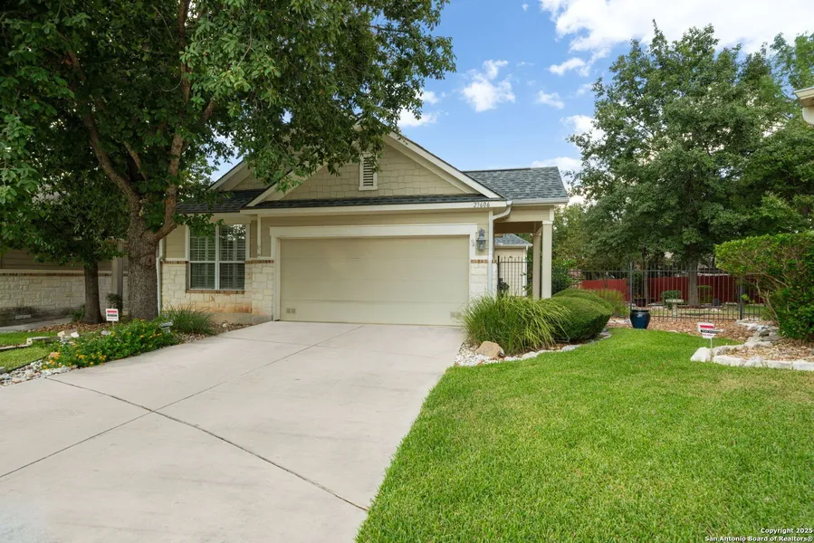 Charming single level home in a guarded gated community on a private cul de sac LOT. This well maintained home has 3 rooms , 2 bathrooms , high ceilings and open floor plan makes for a spacious feel. Freshly updated with paint, countertops , lightning and fans. Tranquil landscaping , mature trees , two private patios to enjoy along with thoughtful yard design. This community offers a great amenities such as multiple tennis courts, full size lap pool , clubhouse and plenty of walking trails.