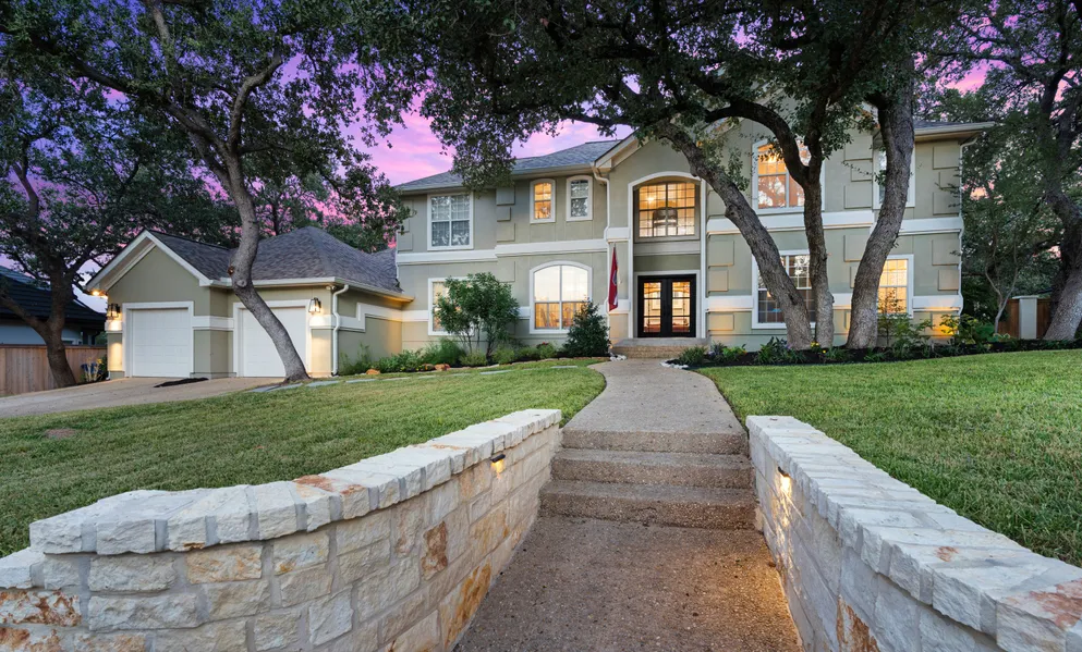 Nestled among majestic mature oaks in the coveted Park at Deerfield, this custom Steve Heflin home offers over 4,000 sq. ft. of elegant living with an open, light-filled layout and timeless finishes. A welcoming covered stucco entry and new custom metal doors lead into soaring ceilings, rich hardwood floors, tumbled travertine, plantation shutters, and abundant natural light. The formal living room is truly breathtaking, while the family room with stone fireplace provides a cozy and inviting space overlooking the backyard. The chef's kitchen features custom cabinetry, extensive counter space, wine niche, breakfast bar, and under/over cabinet lighting-perfect for entertaining. A formal dining room is ideal for holiday gatherings. The spacious primary suite offers bay window seating, outdoor access, and a luxurious bath with dual va...