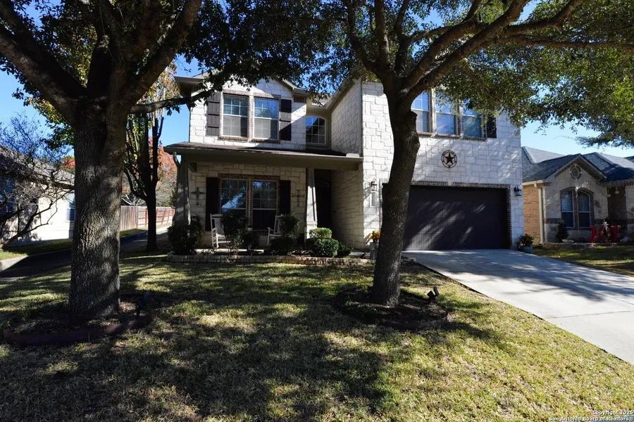 Introducing Charm & Charisma. This 4 bedroom 3 1/2 bath home shows better than many of the builders new model homes. One of Centex Builders most popular 2 story floor plans with 3104 SF of living space. Two living areas down with a large game room upstairs. Home features wood flooring, granite counters, 42" cabinets, crown molding and a cozy fireplace. The covered patio with flagstone walkways is the perfect spot to relax overlooking your private green belt lot. Easy access to IH 10, La Cantera Mall, the Rim and a short ride to down town Boerne, restaurants, shopping & Schools.