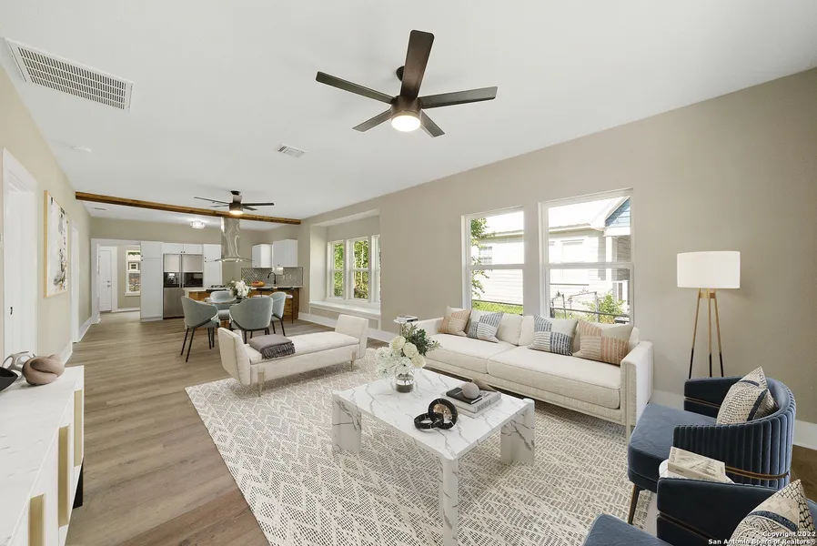 Charming 3 bedrooms, 2 full baths, and an open-concept layout ideal for everyday living and entertaining. Updates completed in 2022 include a new HVAC, hail-resistant roof, James Hardie siding, windows, luxury vinyl flooring, plumbing, light fixtures, blown-in insulation, and new concrete. Conveniently located near Hwy 281, just minutes from The Quarry Market, The Pearl, North Star Mall, and San Antonio International Airport. Photos are from a previous listing. Seller Financing available.