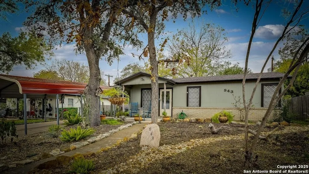 Have you ever stepped into a house that feels like it's giving you a big, warm welcoming hug? That's the vibe of this charming, one-story located in the popular Bellaire community! Step into a formal living area with brick accent wall, leading to the large expansive kitchen that offers a wonderful gas stove with stainless vent hood, a refrigerator that conveys, a stainless double sink, and an abundance of cabinets and counterspace with gorgeous backsplash. The showcase of this home is the large family room (den) that features a dining area and second living room made for entertaining or for your personal sanctuary relaxing after a long day. Bathed in natural light from the picture window overlooking the lush and shady backyard, there is plenty of room here for an office area as well. Stylish vinyl plank flooring throughout the common areas and recent new carpet in the bedrooms. The bathrooms offer both a tub for littles and a step-in shower in another for aging in place. Central heat and air throughout the home, with the addition of a small gas heater also in the family room that provided much warmth during the city's electric power outage. Utility room also inside with stackable washer and dryer to convey with home purchase. Ceiling fans throughout the common areas and in the bedrooms. The exterior of this home is also special with low-maintenance, zero landscaping in the front yard. A carport canopy provides shelter from the elements for as many as 4 cars. A cozy enclosed porch expands the space between the family room and the backyard that is perfect for sipping coffee in the mornings! The backyard is generous in size and offers a privacy fence, mature trees, designated gardening areas, and two storage units that will convey. This home is located just a short walk to the cute revamped Bellaire Park with newer jungle gym equipment for kids just down the street and it is also convenient to Palo Alto College, Texas A&M San Antonio and Loop 410! Ride the Mission Bike Trail located within a mile too!