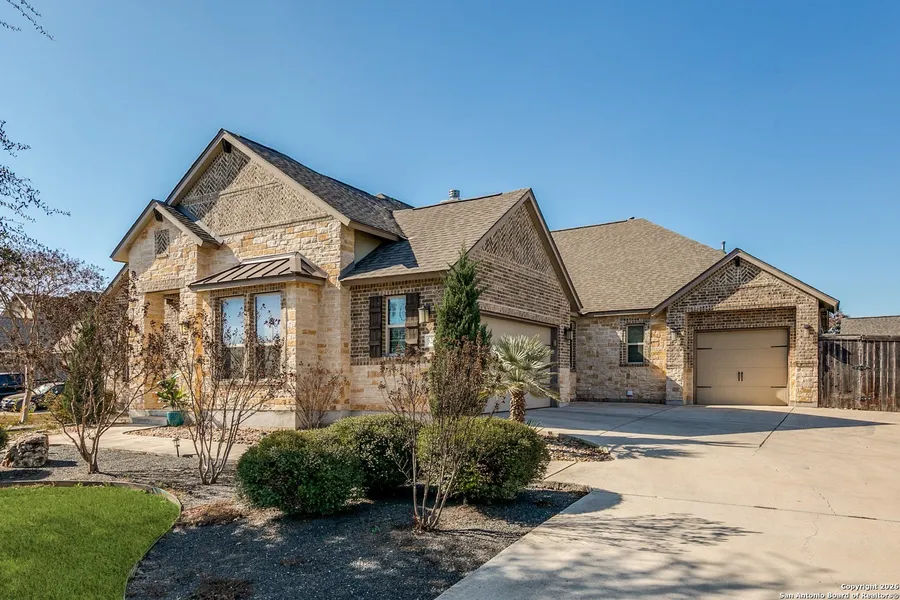 *Welcome Home!* Resortstyle backyard with pool and outdoor bath - perfect for gatherings. Spacious party room with builtin wet bar!!! This gorgeous single-story home offers 3 bedrooms, office/4th bedroom flex room, 3.5 baths, gameroom/party room, and a 3-car garage on over a half-acre lot. The open-concept kitchen features stainless steel appliances, gas stove, and oversized island, flowing into the living room with a custom built-in wall and gas fireplace. The gameroom/party room features a wet bar and surround sound-perfect for entertaining. The backyard oasis features a pool with extended decking, tongue-and-groove covered patio, and a 16x24 shed that can be finished & used for whatever you desire!! Did I mention the full bathroom outside?!- so convenient for pool parties! Located in the desirable gated community of The Park at Cimmaron Enclave. Easy access to Lackland AFB, SeaWorld, Loop 1604, Hwy 151, dining, shopping and more! NISD schools & No city taxes! Come make this home yours! Going once, going twice.....
