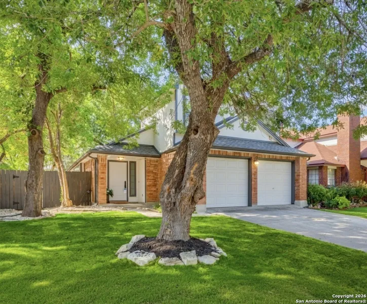 Updated four bedroom single family home in Hunters Chase in northwest San Antonio featuring a downstairs primary suite and bright modern finishes. At approximately 1,758 square feet, this two story layout offers an open concept living, dining, and kitchen area that flows naturally to the back patio, creating an easy space for everyday living and entertaining. The primary bedroom is located on the main level for convenience and separation, with three generous secondary bedrooms and an updated full bath upstairs. Recent improvements include contemporary lighting, stylish bath updates, and fresh interior touches, plus a cozy fireplace in the family room. Outside, a private backyard and low maintenance yard provide space for morning coffee, pets, or weekend grilling without heavy upkeep. Residents enjoy access to community amenities including a neighborhood pool, park, and sports courts, all within the popular Northside ISD and close to UTSA, USAA, the Medical Center, La Cantera, and The Rim, with quick access to Loop 1604 and I 10. Schedule a private showing to experience the layout and updates in person.