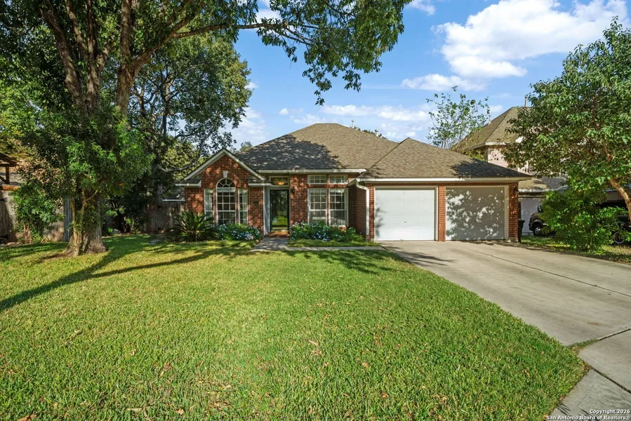 Tucked away on a quiet cul-de-sac, this beautifully maintained single-story home sits on a generous .3-acre lot surrounded by mature trees and lush landscaping, offering privacy, space, and a peaceful setting. Inside, the home opens to a light-filled living area with vaulted ceilings and a cozy fireplace, seamlessly flowing into an open kitchen featuring a skylight and designed for both everyday living and entertaining. The kitchen offers ample counter space, abundant cabinetry, and overlooks multiple dining options, including a charming breakfast nook and a formal dining area ideal for gatherings. With 4 well-appointed bedrooms and 2 full bathrooms, the layout provides flexibility and comfort for a variety of lifestyles. The primary suite is a true spacious retreat overlooking the greenery of the backyard, featuring a spacious bathroom and a large walk-in closet. Recent interior paint touch-ups and updated flooring enhance the clean, move-in-ready feel throughout the home. Step outside to enjoy the expansive backyard, complete with a brick patio perfect for outdoor dining or relaxing under the shade of mature trees. The yard also features a tool shed set on a slab and wired for electricity-ideal for a workshop, storage, or even hobby space. Thoughtful landscaping and meticulous upkeep reflect the pride of ownership found throughout the property.