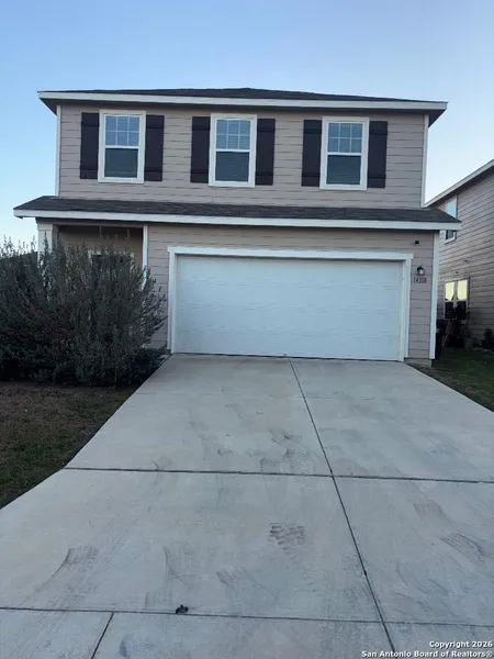 Located at the Trails of Culebra in Northwest San Antonio, the community offers a resort-style pool with a cabana and easy access to 1604 and 151 Hwy, and minutes from popular attractions. This like-new home offers a 3-bedroom, 2.5-bath home built in 2021. Custom-built-in electric fireplace with TV stand and bookshelves. Open floor plan with a large family room opens to an eat-in kitchen. Granite Countertops, nice size pantry, and downstairs storage. Large primary room upstairs with a ceiling fan, a walk-in closet, and a full bath. Experience the perfect blend of style and functionality.