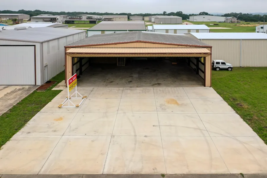 Available at the Boerne Stage Field Airport is a large hangar for storing your own personal aircraft, or can be used as large warehouse/office space. Would make a great personal hangar for the avid pilot or a great rental property. The hangar has an office space inside, on a second floor level as well as a full bathroom with shower and extra storage room underneath the stairs/office.