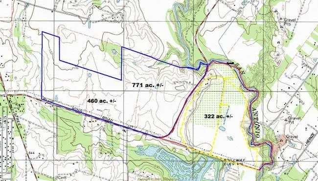 771 acre ranch only 15 min from downtown SA. The ranch has frontage on both sides of Blue Wing Road w/approx. 450 ac on the west side of the road & 320 ac on the east side of the road. The ranch has approx. 1 and 3/4 mile frontage on the San Antonio River. The river bottom on the property is lush & extremely fertile & there is a lrg Pecan Grove located in the bottom. There is a lrg home on the property that dates back to the mid 1800`s. There are barns & lots of outbuilding & good corals.