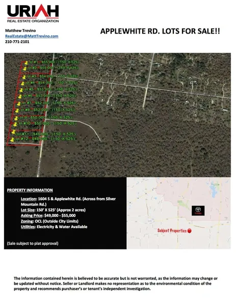 Location" 1604 S & Applewhite Rd. (Across from Silver Mountain Rd.)
