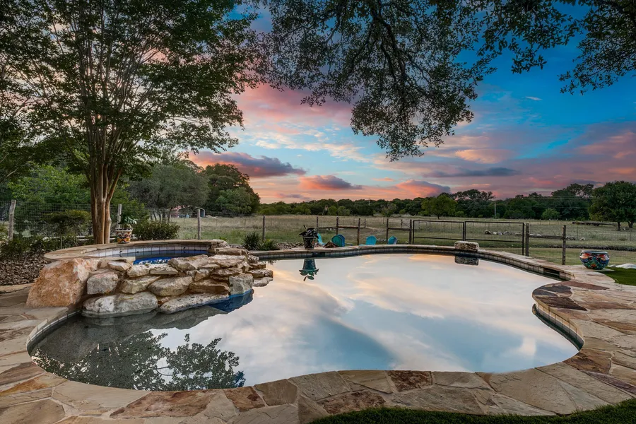 Boutique Horse Property, Gorgeous Ranch with fabulous floor plan. Amazing Private 12 acres conveniently located in sought after Golf Course community. Jump in your golf cart to pick up kids or have dinner at the Club and have your acreage with horses too. INTERIOR FEATURES This exquisite 4-bedroom, 3-1/2-bath home has 3557 square feet plus an additional 800 square foot apartment above garage to complement this home. $200,000 in recent refurbishing; painting (in & out), appliances, new fixtures in kitchen, dining, living and foyer, fencing, and pool equipment. Keyless entry on main. This sprawling, ranch style home is located on a single level with lots of natural lighting, soaring ceilings, open floor plan, bright neutral color palette and two fabulous living areas, each with a gorgeous stone fireplace, and views of large backyard. Multiple rock fireplaces (3) throughout this home provide warm cozy atmosphere. Kitchen recently replaced with top of line appliances, Jenn Aire double ovens, Bosch dishwasher, stainless steel refrigerator, induction stove, beautiful tile back splash, large butler's pantry, and oversized island (tons of storage), and dual dry bars. The enormous master closet recently had lighting replaced with new can lights. Boasts a great number of shelves and storage. Laundry hook ups are readily in this awesome closet. Beautiful sitting area off the master with glass doors that gain you access to the incredible outdoor living space, Jacuzzi and pool. Master offers spacious walk in closet and private master bath with tub area, fixtures updated. Lots of gorgeous built-in shelves and cabinetry, including jewelry drawers in master bath. Fourth bedroom off the entrance can easily convert to Office/Study may be used for in home business and features an inviting stone fireplace, exquisite doors, built in desk, and vaulted ceilings with beam. Large guest or mother-in-law suite above the garage is great for media, play space and has full bath, complete kitchenette, and washer/dryer hookups. Custom Hunter Douglas Drapery & Blinds throughout home will remain. Bathroom updates recently to include half bath and vanity area as well as shower in Guest Bedroom. EXTERIOR FEATURES Beautiful one of a kind, well-kept 12 acres with rolling grassy pasture any equestrian would love, close to Boerne yet completely remote and private. An amazing backyard with built in rock grill along with open rock patio space with outdoor kitchen, plus shower, raised bed drip gardens and lush floral landscape, and firepit. A gorgeous pool and hot tub with recent up graded equipment, and more than enough space to entertain. Fans & Lighting system, extensive landscaping, and touchless faucet. Beautiful driveway with multiple car parking and garage. Additional barn/ storage space perfect for parking camper, boat, horse trailers or other implements. Wonderful Ag barn that boasts a great chicken coop (indoor\outdoor space) … enjoy fresh eggs daily! Fencing great for 4H projects and leisure animal lovers. This property boasts an approval for horses on the acreage in this sought-after country club area of Fair Oaks, only one in this area with animals allowed. Ride your horses out the pasture gates onto Fair Oak Ranch horse riding trails. Recently updated back yard with AstroTurf for easy maintenance. Tree clusters have been rocked to minimize yard work around home. Two horse stall run in. Extensive fencing added throughout property and pastures. Privacy galore. Easy access to IH- 10, 5 minutes from the Country Club, moments from Boerne, Leon Springs, Rim/La Cantera, and San Antonio. Fifteen minutes to Fair Oaks Club and Cordillera also. - 3/27/2023 1:00:29 PM