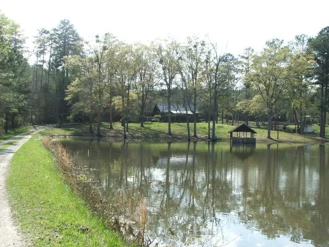 46 acres +/- of great recreational land for sale with a rustic cabin on Highway 82 near the Lawley Community of Bibb County, Alabama. The Cash tract has a nice 3 acre +/- lake with bass and bream. Talladega National Forest joins this property on the west side, giving you the opportunity to walk off your land and enjoy the Forest as well. The property has a good internal road system with several food plots. The family has taken nice deer off this tract through the years. The one bedroom/ one bath cabin has a loft which could be used as another bedroom. Many of the boards in the cabin were taken from a home built in the 1860's and re-used here. Several gazebos and shelters are on the property, and it has been used to host parties and holiday celebrations for years. Included are a barn, chicken coop, and two in-ground storage buildings. The view of the lake from the front porch is really ni...