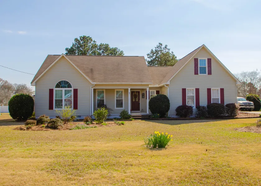 Lovely 3 BR, 2 BA home with fantastic layout. Everything has been redone, new flooring, new fixtures, new appliances, new hot water heater, brand new HVAC since listing, septic system inspected and serviced, fresh paint and new kitchen cabinets with lots of storage in pantry. There is a breakfast nook and separate dining room. Wood burning fireplace for cozy nights. Deck off kitchen and another covered deck off the living room. All this on half acre.