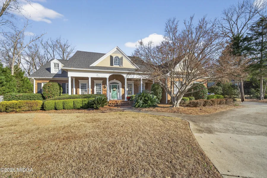 Welcome to this beautiful all-brick, open-concept home located in the prestigious Bradford Subdivision in North Macon! This 5-bedroom, 4.5-bath home features quartz countertops, plantation shutters throughout, an impressive fireplace in the great room, and a beautiful dining room perfect for hosting. The primary suite plus two additional bedrooms is conveniently located on the main level. Enjoy outdoor living at its best with a large, fenced yard, swimming pool, and a covered back porch with fireplace and TV-ideal for relaxing or entertaining. One walk-in storage area is heated and cooled, plus custom cabinets in the garage and additional storage throughout the home. This house has it all-luxury, comfort, and space in a fantastic location!