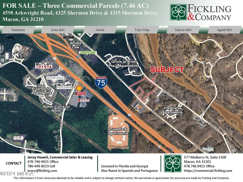 LOCATION: A desirable location in the heart of North Macon, just one mile of I-75, close to vibrant Riverside Drive, Bass Road and the best shopping that Macon has to offer, and a 10-minute drive from Historic Macon. Surrounding neighbors include Shoppes at River Crossing, River North Subdivision, Butler Nissan, Lexus, & Toyota, and many more retailers, class A offices, and restaurants. DESCRIPTION: 7.46 Acres of PDC zoned land (Planned Development Commercial) with frontage on both Akwright Road and Sheraton Drive, offering outstanding visibility. Some permitted uses include places of assembly such as theaters, event centers and/or auditoriums, public utility buildings and structures, communication towers and antennas, churches, private and public schools and libraries, kindergartens,playschools, and day care centers, recreational areas and structures, including private clubs, bowling al...