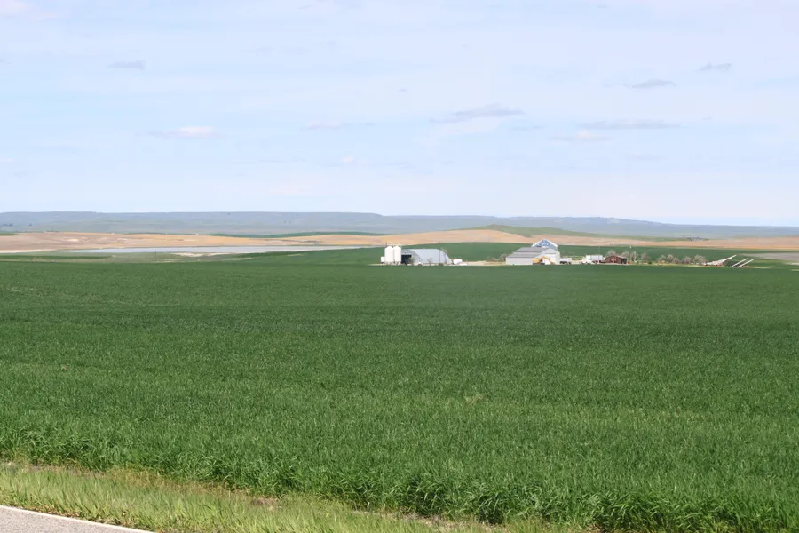 Close to Billings, Mt.4170+/- Total acres 3100+/- Dryland Farmed, 1070+/- Grass. Nice 4 Bedroom 2,5 Bath Home with heated 2 car Garage, 56x60 Heated shop,75x120 Quonset,35000 bu. Grain bin, 24x32 out building, Loading docks, Graveled driveway and yard. Broker has partial interest in property.