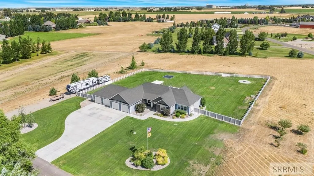 Modern & luxurious living meets wide-open country charm at 1084 E 1465 N. This stunning 6-bed, 4-bath home offers high-end finishes, soaring ceilings, & a light-filled open layout designed for both comfort & style. The dedicated office features inspiring views of the land—perfect for remote work or quiet reflection. Though it has a Shelley address, it is only 13 minutes from the INL Idaho Falls offices,15 minutes from the Hospital, and only 10 minutes from Historic Downtown Idaho Falls. Country spacious living with quick access to city amenaties. The spacious primary suite includes a large walk-in closet. You can also enjoy a 2nd master suite on the main floor, whether it's for a guest room, or a mother-in law suite, it'll give you the flexibility needed for a busy life. Step outside to enjoy a covered patio, relaxing hot tub, charming gazebo, & a brand-new fence enclosing the grounds. The giant garage offers room for vehicles, toys, or a workshop. Pressurized water system supports the pasture, & livestock is welcome. This home is ideal for someone who craves modern elegance with the freedom of rural living—bring your horses, enjoy the views, & spread out in style. ASK HOW THE OWNERS LOVE THUNDER RIDGE.