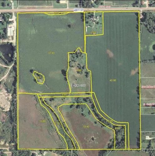 138 acres, m/l, located along W. Airline Hwy. ¼ mile West of Hwy. 63. 82.5 tillable NHEL acres with 72 CSR. Balance is made up of CRP/recreational land. Two rental homes, including outbuildings. $4,325/A