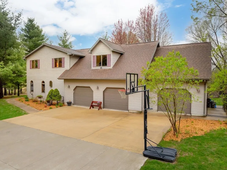 Perfectly picturesque! This wonderful acreage is nestled in the highly desired Sylvan Acres development and provides the peaceful living you've been looking for! The long tree-lined lane welcomes you to this spectacular well-maintained home. Inside the front door, a sitting area leads to the spacious main floor living area. Floor-to-ceiling windows overlook the deck and private backyard, where you'll see all kinds of beautiful wildlife in each season. Soaring ceilings and a double sided gas fireplace are highlights of the living and kitchen areas. The kitchen features Cambria Quartz countertops, stainless appliances, plentiful storage, and a massive center island with breakfast bar seating. Two dining areas make hosting a crowd a breeze. Beyond the living area, you'll find a primary suite with a spacious full bath and large walk-in closet. Also on the main, you'll find a half bath, dedicated laundry room, and plenty of storage. A lofted living room area greets you as you travel upstairs. Here you'll also find 2 more generous bedrooms and a HUGE bonus room, which is perfect for hobbies, a kids hangout area, game room, exercise room, or more bedroom space. (This room boasts stairs down to the garage, to make hauling hobby projects in and out easy.) The basement of the home provides yet another perfect hangout space with a billiards area, bar, and a walkout to the patio and backyard. Another bedroom, huge bathroom, and sizeable storage room round out the lower level. Outside, you'll enjoy peaceful evenings on the deck that spans the back of the home. Beautiful landscaping adorns the property. A 36x24 outbuilding boasts a 6ft front porch, a large workshop with PTAC Unit for heating and cooling, and ample storage for implements. You'll love having access to Sylvan Acres' 70 acres of shared land that can be used for hiking, hunting, fishing, and 4-wheeling! Other wonderful features of the home include a massive 1216 sqft 3-stall garage, central vac system, newer concrete, a plumbed natural gas grill, Bose surround sound system in the loft, and a new water heater and water softener. There is SO MUCH to love here! Hurry and schedule your showing today!