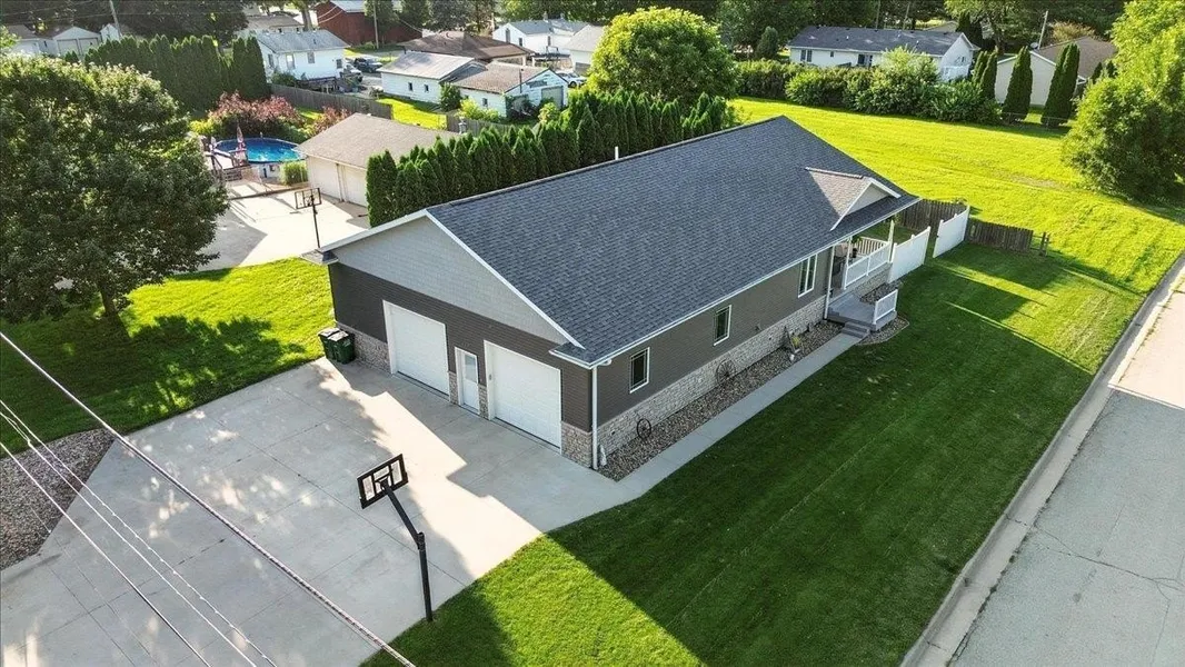 Welcome home to this charming Evansdale residence, offering spacious living and a fantastic layout. Enjoy the bright living areas, as the main level boasts a generous living room with warm wood flooring and a stylish fireplace feature wall. Flowing into an open-concept kitchen with ample pantry space, counter space & an island for a great conversation place. Adjoined with the dining area, or set it up as an office area to meet your needs. Entering in from the garage, you have a main floor laundry room and the mud room space great for entering into the home. The main also provides two large comfortable bedrooms, including a large private primary with a walk-in closet. In between the bedrooms you have a spacious main floor bath with a tiled shower. Going to the lower level you will notice the unique & wonderful stamped heated flooring. These floors are so easy to clean & enjoy. There is a wonderful sized living space that includes a built in wall bed feature. Great for a relaxing space. You also have two additional bedrooms with egress windows, and great closet space in each room. The lower level has another bathroom that includes a jacuzzi tub. The home also includes an impressive 1,160 sq ft garage, providing ample space for vehicles, hobbies & hanging out. It includes heated floors, which are great for those winter snow days. It also provides you with a bathroom of its own. Along with a Central Vacuum System that can clean the house & garage. What a bonus!! Updated New Central Air in 2024. Outside, enjoy the concrete driveway spacious for many to park, well-maintained yard and the peaceful neighborhood setting with a nearby park and playground. This property offers a blend of comfort, practicality, and a welcoming community atmosphere. You have to see this one for yourself to enjoy all that it offers. Schedule your showing today! Nestled in a friendly neighborhood this home is perfect for relaxed living.