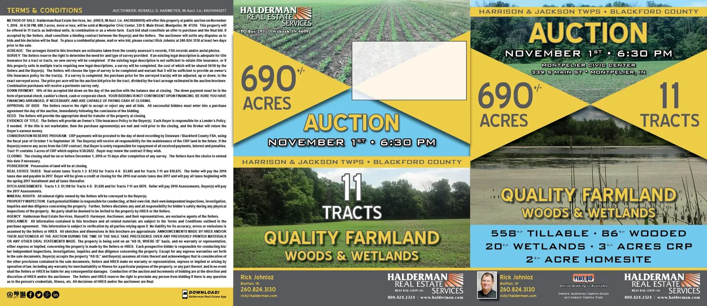 Legal Description: Tracts 1-6: In a part of Section 2, T23N, R11E (Jackson Twp) and part of Section 32, T24N, R11E, (Harrison Twp); Tracts 7-11: in a part of Section 5, T23N, R11E (Jackson Twp), all in Blackford County, State of Indiana