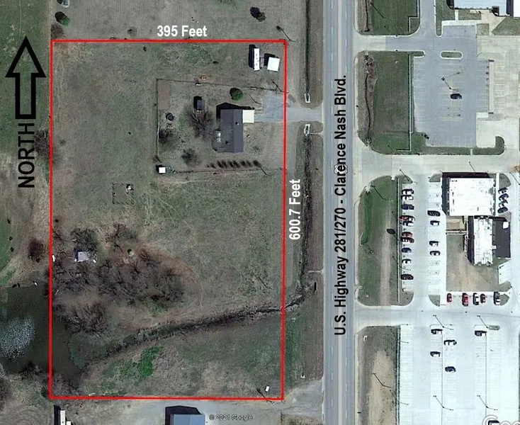 Property has 600.7 feet of frontage on West Side of U.S. Highway 281/U.S. Highway 270. Note: Additional Oklahoma Department of Transportation (ODOT) right-of-way (ROW) has already been acquired. Rectangular shaped site measures 600.7 feet (Wide) by 395 feet (Depth) and is level. 2018 ODOT Traffic Count is 7,200 Vehicles Per Day with a substantial vehicle count increase anticipated for 2021 survey.