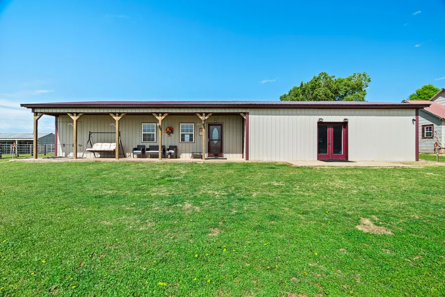 Homesteader's Dream on Unrestricted Land- Barndominium + Shops + Pool and MORE Offered at steal, this incredible 2016-built bandominium sits on unrestricted land and is packed with features for comfortable country living or homesteading. Enjoy your own private oasis with a beautiful in-ground pool, complete with a brand new liner. The property includes two in-ground storm shelters- one wired for generator power for added peace of mind. You'll have room for every project or passion with 3 spacious shops. 40x80 30x30 Fully insulated 3 bay shop with its own central heating and cooling system. Perfect for raising animals, the property also features a large chicken coop, corrals, cattle guard, fencing, and a dedicated animal shelter. A natural spring fed pond feeds a stock tank, ideal for livestock or equine use. New central AC system plus mini split inside home to help maximize comfort while keeping energy costs low NO RESTRICTIONS, motivated seller, and the opportunity to purchase additional acreage if desired. Don't miss your chance to make this rare, self-sufficient setup your own!