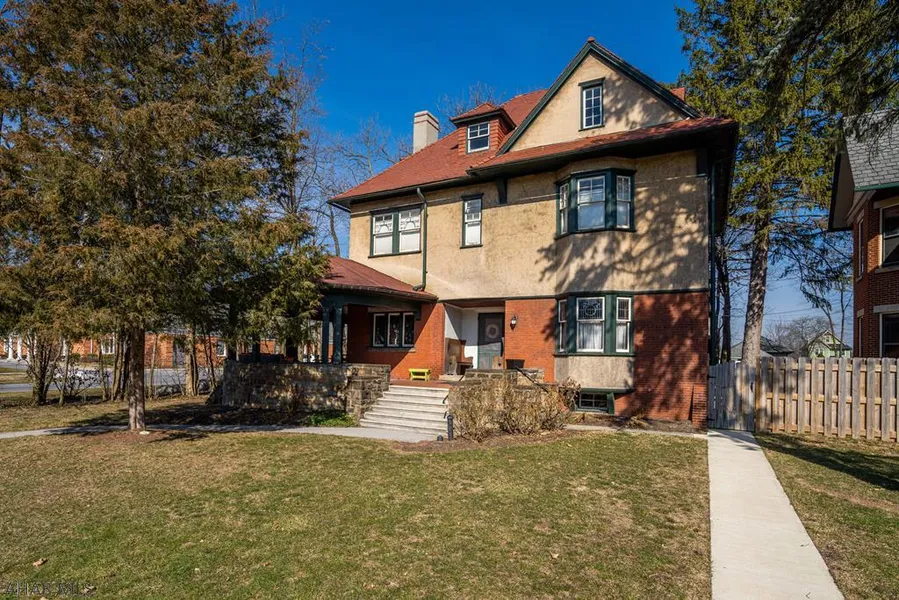 Charm and character abound in this classic brick/stucco Borough home. Features include stained glass/leaded windows, stunning wood trim, hardwood floors and a first floor laundry. 1st flr is large enough to suit all families...plenty of space for everyone. The 1st floor half bath is in the process of a make-over. Need a home office? There is a perfect spot headed upstairs to the 2nd floor. 4 BRs, 2 new bathrooms, all very tastefully done. Central air has been added for comfort. Walk outside and enjoy warm Summer evenings on the wrap around porch, there's also a patio area in the rear. Walk down the sidewalk to the rear carriage house...so many possibilities. This half acre lot runs block to block...a rare find in the Borough. Of course the location is awesome...just steps to Downtown.