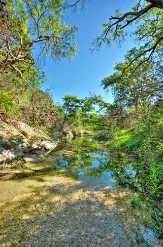 A simple but clean 3 bed 2 1/2 bath home offers impressive views while set amongst the live oak, walnut, elm, pecan and other hardwood varieties. An 1800 sqft wood frame metal exterior barn houses all the toys and has good lighting installed. A small pond sits between the creek and back of the home. An estimated 5-8 acres are already cleared in fields and could be planted in grapes or wildlife food plots.