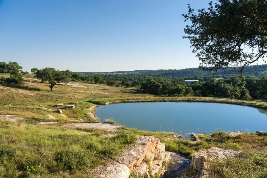 57 wildlife exempt acres just on the Blanco/Hays County line. Deep water Flat Creek frontage (downstream neighbor has massive concrete dam) with wood staircase down to waters edge for easy access, 100' x 20' deep lined stocked pond with circulating water pump/waterfall, selective cedar clearing, 14GPM water well, 500 gallon propane tank, septic system installed at pad site, multiple building sites, native grasses planted (buffalo, KR blue stem), big time views, super recreational tract for the family.