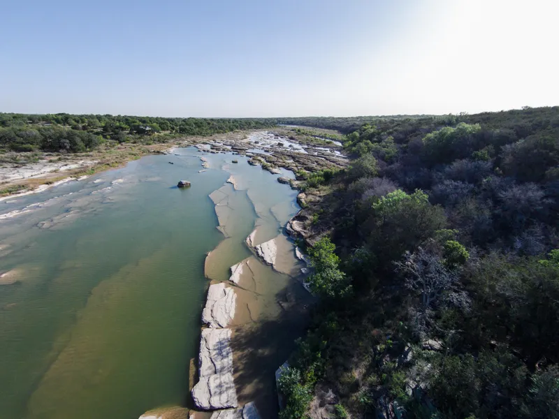 100 unrestricted acres raw land with gorgeous views of the Pedernales River, unique rock outcroppings, great frontage on 2766, fenced on 2 sides, current Ag exemption, very private, small field could be reclaimed to grow grapes, olives, hay or wildlife food plots. Build on the river bluff or could be divided.