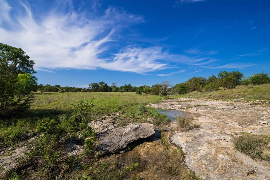 411 diverse unrestricted acres just 4 miles East of Johnson City. Older homestead with outbuildings, water well, utilities and septic on property, diverse tree cover, 3 sides fenced, current Ag exemption, wildlife plentiful, County Rd 2766 access, no road easements.