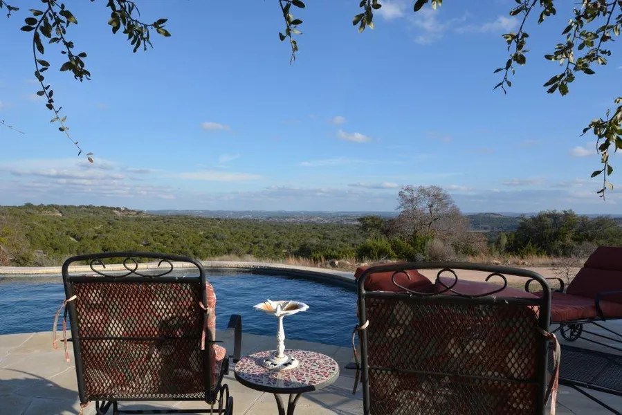 12.14 Acres in Spicewood with breath taking Views! 3/2 manufactured home on property. Awesome in ground swimming pool that was added 4 years ago. From the pool the views are amazing! Several outbuildings/storage buildings. This property also offers a guest cabin. Cross fenced area that is currently being used for horses. This is a very unique and beautiful hill country property. It is move in ready and also could be an excellent spot to build a new home with great pool already in place!