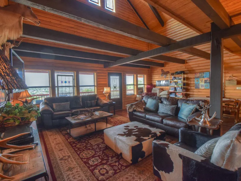 Land This bluebonnet covered acreage gently slopes down to the spring fed creek and is mostly cedar cleared with live oak trees being the dominant hardwood. From the back porch of the home, there are nice views of the Devils Backbone or the topographic relief separating Blanco and Johnson City. The creek drainage is flanked by a rock walking path in addition to a flagstone patio sitting area. The property is perimeter fenced and carries a current Ag exemption with Blanco County. Other features include an Indian mound and small cave.