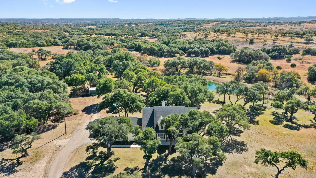 25 acres in the exclusive community of The Landing in Blanco Texas with Custom home. This listing has a little bit of everything to offer. Gorgeous home with 3 bay garage and large back porch overlooking the pond, offering 4 bedrooms and 2 baths, with open concept living/dining/kitchen area. The 25 acres is entirely useable with a pond, fishing deck, fire pit, and walking trail. The gated community offers lots of amenities including a private landing strip. The property itself has a gated entrance and is covered with mature hardwoods and includes a wet weather creek. Bow hunting is allowed and the property is under a wildlife exemption. Located in the fastest growing area in the USA.