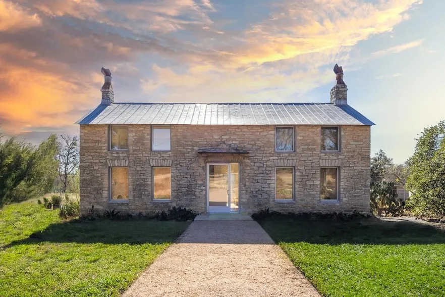 Discover nearly 20 acres of unrestricted land backing up to a sprawling ranch for ultimate privacy. Majestic oaks, pecan trees, a seasonal creek, and open pastures make this ideal for livestock. Additional building sites, fencing, organic gardens, a greenhouse, and a fruit grove enhance the land's charm. A custom chicken coop, pole barn, and a 2-hole golf course add unique appeal, with an ag exemption in place for low taxes. Thought to have been originally built in 1867 and remodeled by V Mode De Vie Design, this 3,019 sqft, 3-bed, 2.5-bath home blends historic character with modern farmhouse style. Oak floors, a stunning kitchen with high-end appliances, hidden fridge and dishwasher, and commercial-grade windows offer comfort and elegance. The home is rich with history and was previously owned by the last Vice President of the Republic of Texas. Located just 1 mile off Hwy 281, it's minutes from Marble Falls, Horseshoe Bay, Lake LBJ, and Austin. A rare blend of history, luxury, and sustainability, this ranch is a true Texas Hill Country retreat.