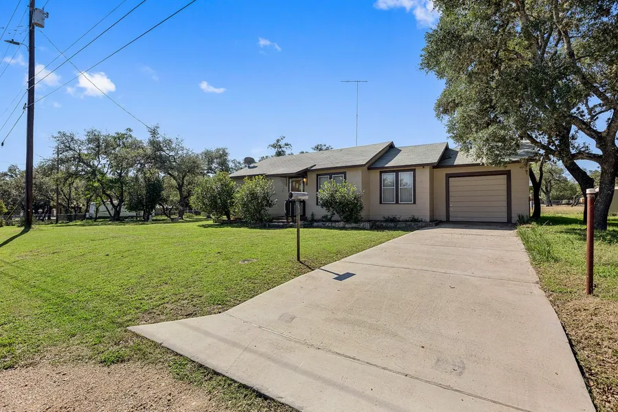 Cute 2 bedroom 1 bath centrally located in Johnson City on a half acre lot. There are two water wells and also city water. This property offers a large yard with some great oak trees providing nice shade. Nice privacy fence in the back yard that makes a great area for pets. This property is in a great location and has lots of potential.