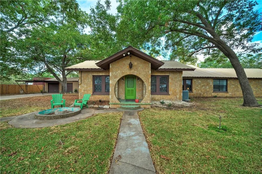 Beautiful tree covered 3.5+ acre tract facing on Hwy 281. Large trees. Two large enclosed garage/workshop outbuildings. Well water & two septic systems. Spacious with metal roof and stone exterior. Original home, 1942, pier and beam foundation; newer portion is on concrete slab. 4 Br, 2 full, 2 1/2 baths. endless possibility Home, office, retail. Beautiful grounds and exterior. Great location just north of Blanco. Rail Box Car does not convey. Must see! COMMERCIAL POSSIBILITIES, NO RESTRICTIONS