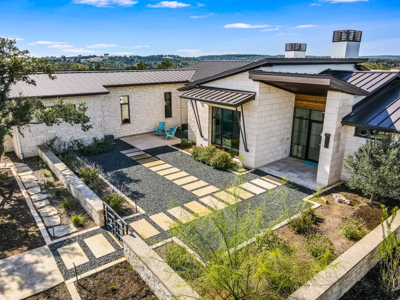 Picturesque vista views add to the seclusion, privacy and quiet location of this exceptionally designed home with WOW factors that will leave you breathless! Impeccable on all levels, this idyllic retreat is a masterpiece of natural beauty and modern elegance offering a lifestyle of tranquility and luxury. Gorgeous millwork and craftmanship exemplify the high end finishes including leathered WOW Fusion Quartz countertops with waterfall edge, Miele 8 burner cooktop, Miele and Bosch appliances, custom Kingwood cabinetry, 700 bottle wine cellar, and gorgeous floating hearth fireplace with Danby-honed marble. Nestled on 22.39 acres in the heart of the Texas Hill Country, this custom designed and built home also features a 50 ft. lap pool on those hot summer days, extensive back patio areas for entertaining, rainwater collection system, water well and extensive native landscaping. This is...