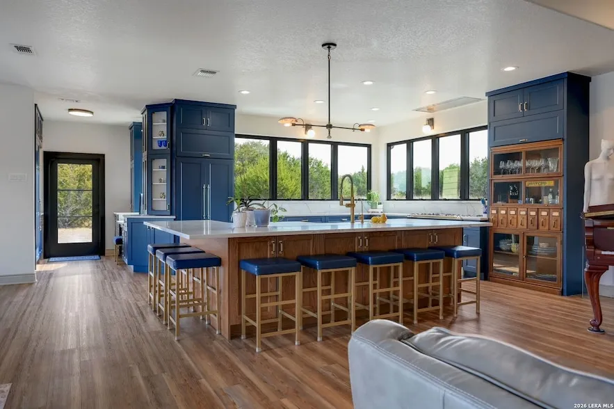 Hill Country Living At It's Finest On 4 Private Acres Nestled Away In Desirable Cielo Springs with Beautiful Hill Country Views and Unmatched Tranquility! This Stunning 3 Bedroom 2 Bath Home with 2 Car Garage, Art Studio and Extra Carport with Freshwater Gunite Pool Offers a Split Floor Plan Tucked Away On a Quiet Cul-De-Sac With Private Entrance! With A Light-Filled Interior Showcasing Designer Finishes Including a White Washed Fireplace and Custom Build Mantle, Gallery-Style Art Lighting and Expansive Thermal Casement Crank Open Kitchen Windows That Flood The Home With Natural Light! The Custom Kitchen Anchored With A Massive Island and Seating for Eight with Extra Storage, Pull Out Shelving, Soft Close Drawers, ILVE 8 Burner Blue Enamel Stove with Rotisserie & Overtop Grill, Built in Bosch Dishwasher, Built-In Fisher and Paykel Refrigerator, Apron Front Fire Clay 32x18 Kitchen Sink, A...