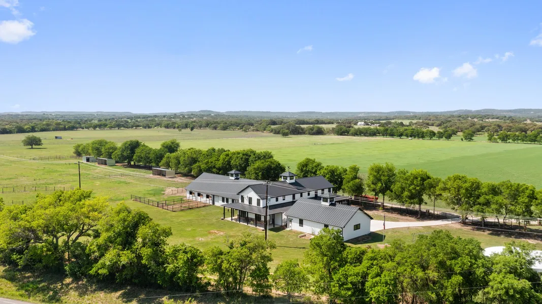 Blue skies, fresh air, and wide-open spaces are a few natural benefits to this fantastic custom-built home, offering a lifestyle filled with the simple pleasures of country living. Located in the highly sought after Blanco, Texas. Set on approximately 31.71 +/- acres, this sprawling property offers a place to explore nature right from your backyard. Built in 2020 and Designed with lasting quality in mind, the 5,839 sqft of living space is constructed out of 2x6 framing and open cell insulation. The main home offers 4 bedrooms, 3 full baths, a loft and an attached oversized 3 car garage. Connected through a breeze way/outdoor kitchen is a 6 stall horse barn with a apartment including a full bathroom and kitchen. Interior spaces are bright & airy, with the living room offering soaring ceilings, a warming fireplace, and French doors that open to a covered porch looking out on green pastures. The chefs kitchen offers GE monogramed appliances, convection microwave and oven with a induction cooktop. The cabinetry throughout the home is Michael Edwards with a lifetime warranty. The water to the home is furnished by a 53,000 gallon rain water collection tank. The well on the property services all the livestock, ran to all 4 horse paddocks and additional pastures. There is also a 8 acre coastal field. Conveniently located less than an hour to Austin and San Antonio. Reconnect with lifes slower-paced pleasures, schedule a showing today!